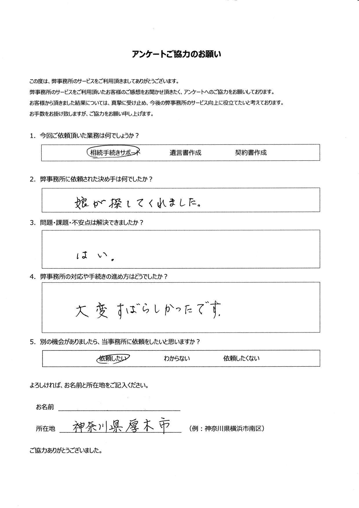 ヒルトップ行政書士事務所に「相続手続サービス」を依頼された決め手は何でしたか?